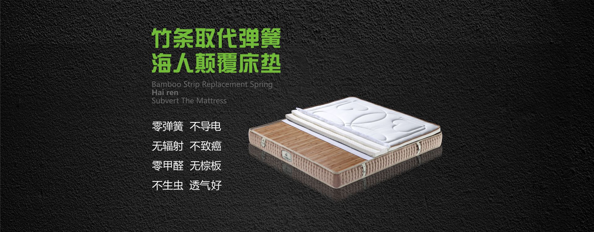 海人竹芯床墊,改變了140多年來世界床墊基本用鋼絲彈簧做內(nèi)膽的結(jié)構(gòu)工藝,床墊底部為竹條排骨架,克服了彈簧生銹變形的缺陷,解決了棕板容易生蟲的世界難題,是一種取代彈簧床墊棕床墊的新型床墊。。因其獨(dú)具無簧有彈性、環(huán)保的特色和折疊、拆裝等上樓方便,運(yùn)輸費(fèi)用低的優(yōu)點(diǎn)。